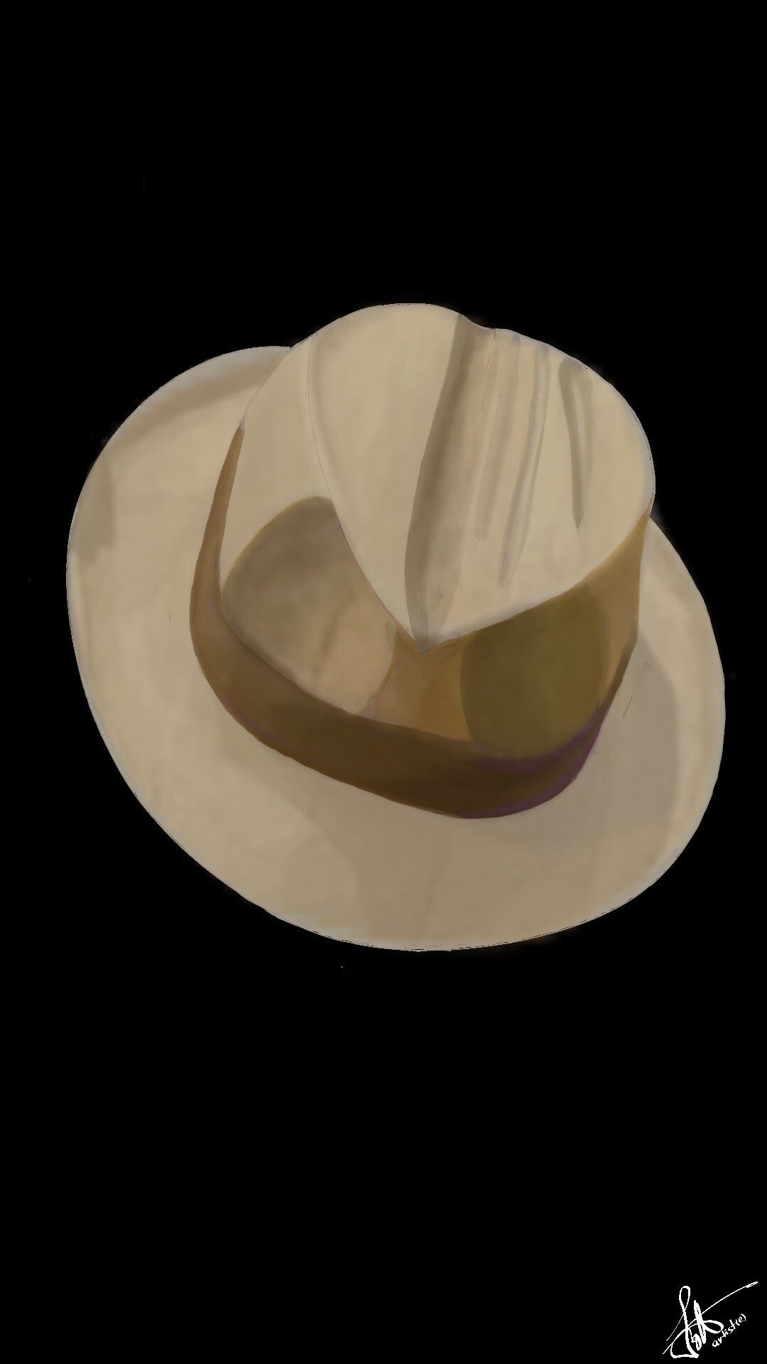 Isolé sur un fond noir profond, le chapeau clair devient une forme sculpturale, presque cérémonielle. Les courbes douces, subtilement éclairées, révèlent la texture du matériau et la délicatesse des plis, évoquant à la fois l’élégance, l’absence et la mémoire.